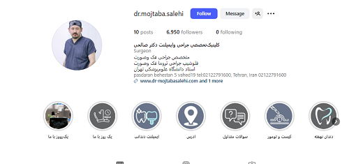 دکتر مجتبی صالحی کاریزمه یکی از جراحان برجسته فک و صورت در ایران است که در زمینههای جراحیهای زیبایی و ترمیمی صورت، اصلاح ناهنجاریهای فک و درمان مشکلات دهان و دندان تخصص دارد. ایشان پس از گذراندن دورههای تخصصی و آموزشی در دانشگاههای معتبر، به جراحیهای پیچیده فک و صورت پرداخته و از تجربه زیادی در انجام عملهای اصلاحی و زیبایی برخوردار است. دکتر صالحی همچنین بهعنوان یک پزشک با مهارت و دقت در زمینه جراحیهای فک شناخته میشود و بیماران بسیاری را در این حوزه درمان کرده است.